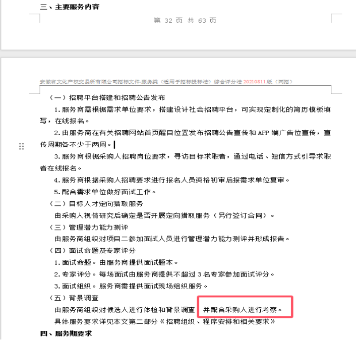 (4)背景调查不包含考察,考察由招标人组织,服务商配合实施。请各投标人综合考虑,谨慎报价。