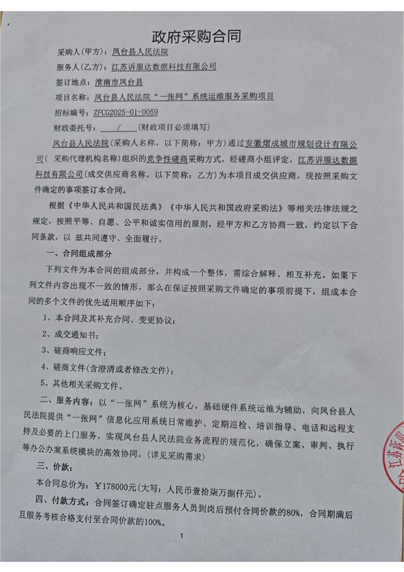 凤台县人民法院“一张网”系统运维服务采购项目合同公示
