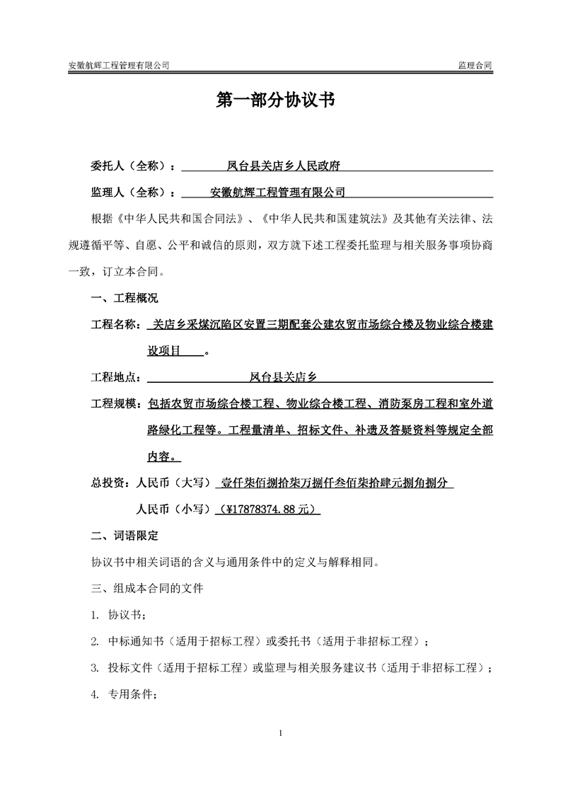 关店乡采煤沉陷区安置三期配套公建农贸市场综合楼及物业综合楼建设项目监理。合同公示