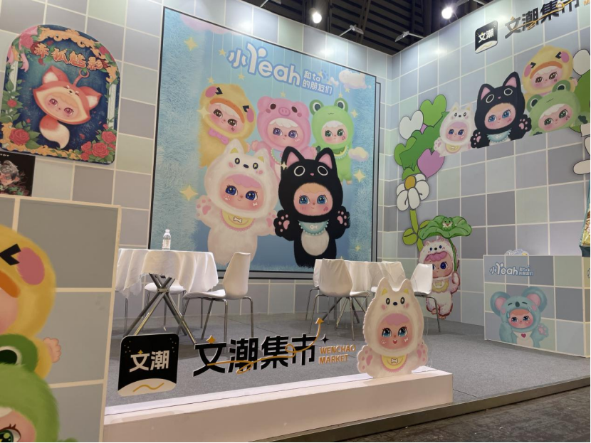 展会上,“文潮集市”平台携旗下限量发行的小yeah、娃三岁、卡皮巴拉、LAURA、KAKU等系列潮玩产品重磅亮相,吸引众多海内外参观者驻足观看,交流平台模式与玩法。